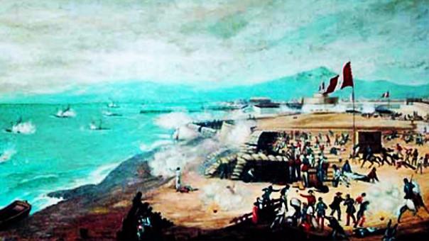 Finalmente el 2 de mayo, fecha señalada por los españoles para bombardear nuestro primer puerto, pasado el mediodía, el blindado español Numancia hizo los primeros disparos y se desencadenó el combate.
