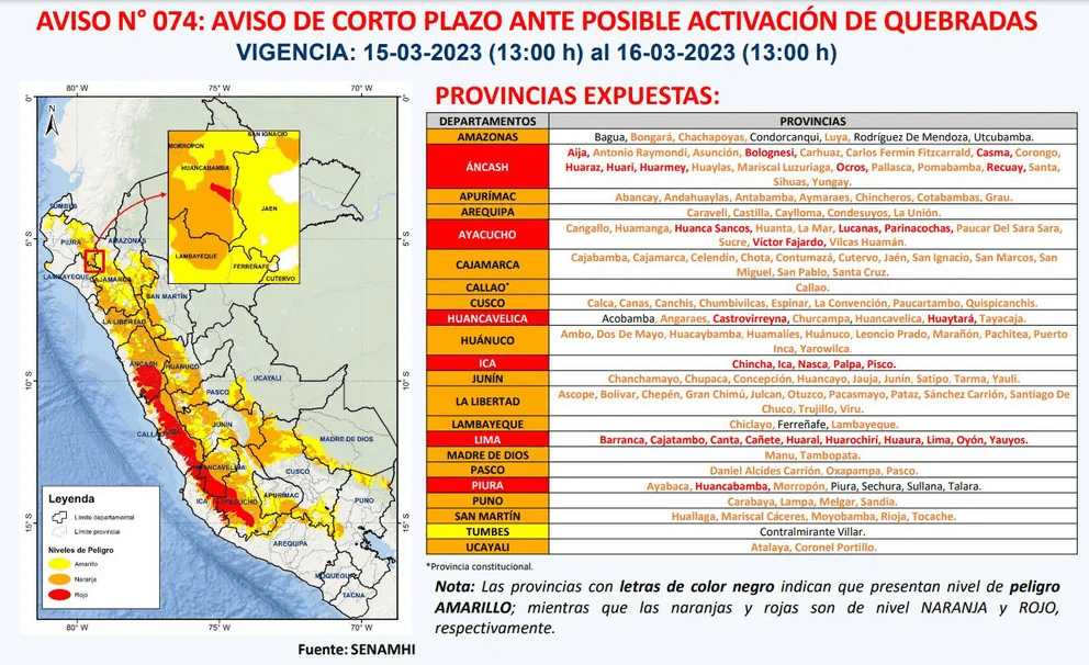 En Lima, 57 de las 60 quebradas de la región Lima Provincias se han activado