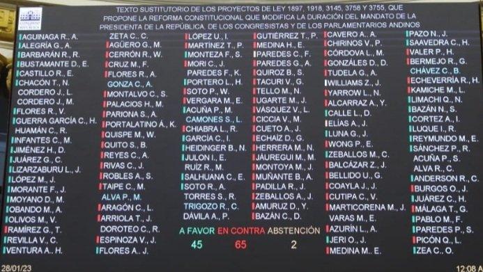 El proyecto de ley de reforma constitucional que al adelantar el final de la gestión presidencial y parlamentaria actual, daba pie a la posibilidad de que se convoque a nuevas elecciones, no fue aprobado por el Congreso de la República.